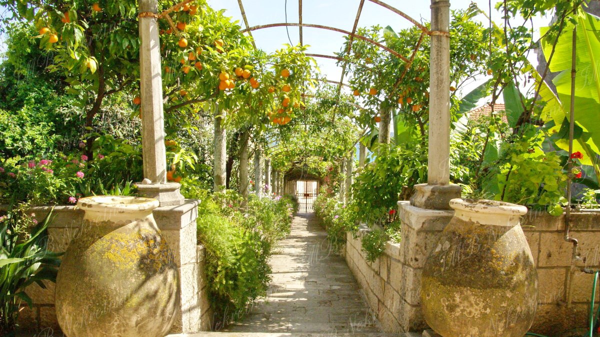 Okružena je tradicionalnim kamenim zidovima koji pružaju potpunu privatnost.