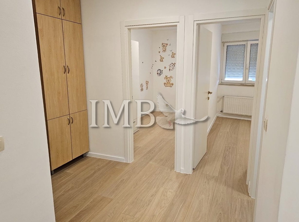 Kompletna renovacija stana izvršena je 2025. godine, s naglaskom na funkcionalnost i kvalitetu. Od opreme ugrađena su nova kvalitetna sobna vrata, prvoklasan parket, porculanske pločice u kupaonici, nove sanitarije, te novi Samsung klima uređaj.