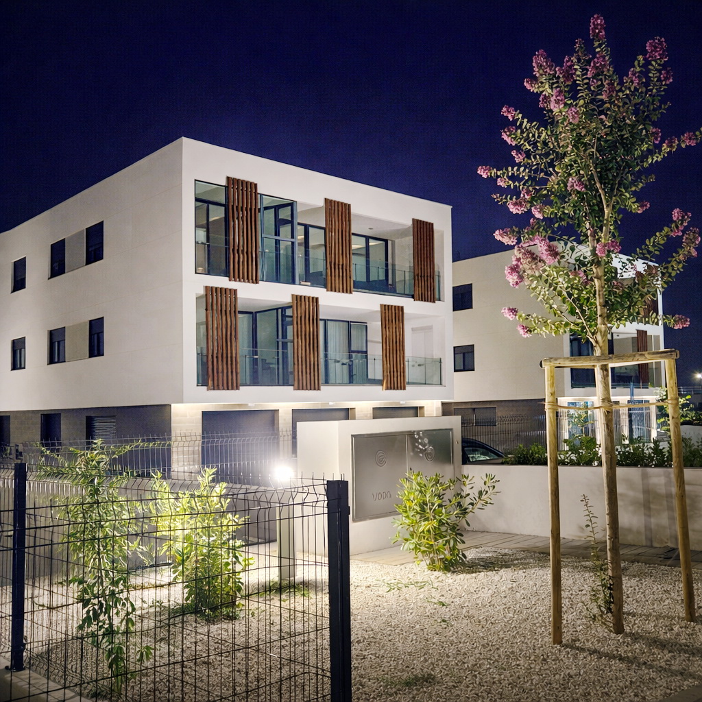 - Uređenje okoliša uključuje travnate površine i mediteransko bilje, dok ambijentalna rasvjeta diskretno naglašava arhitekturu zgrada. Za zajedničke potrebe opskrbe električnom energijom postavljena je fotonaponska elektrana, što omogućuje smanjenje zajedničkih troškova.