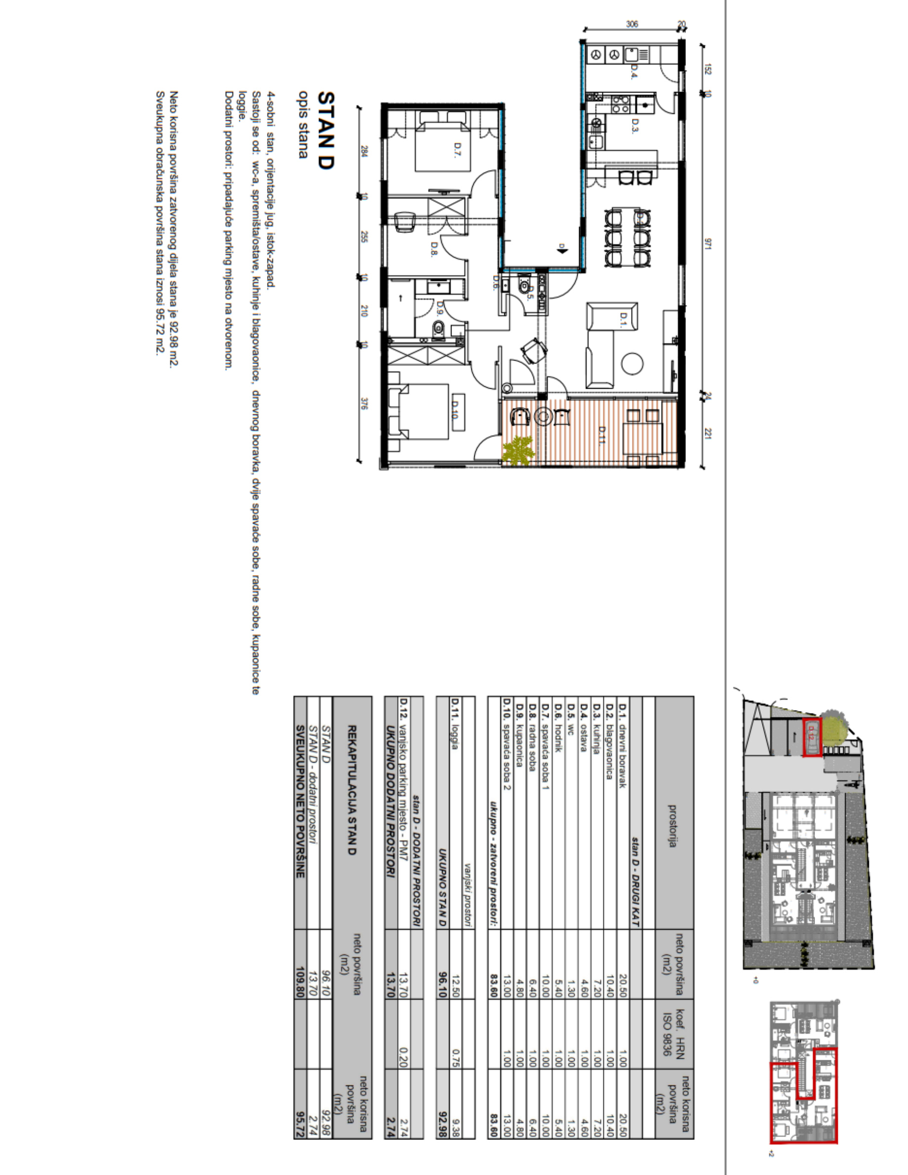 Neto korisna površina stana 92,98 m2 + PM7 2,75 m2; sveukupna obračunska površina stana 95,72 m2;